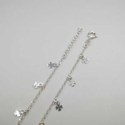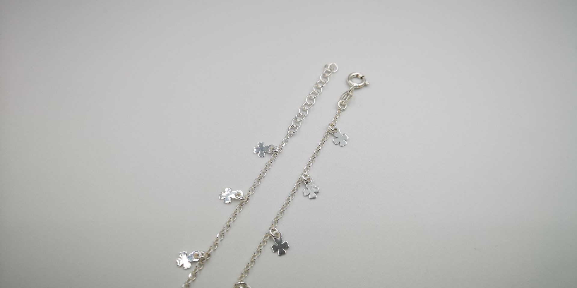 Ezüst női bokalánc anker stílus,mozgatható lóhere függő díszítéssel.