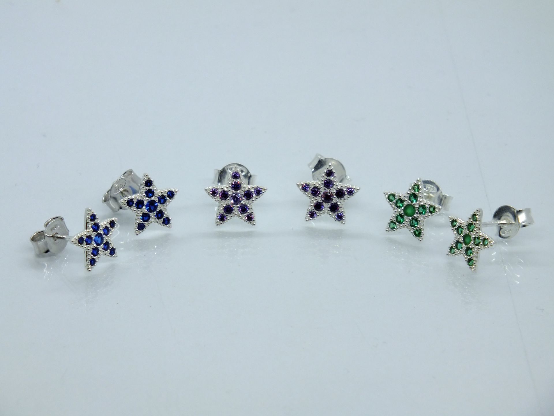 Női ezüst fülbevaló, csillag alakja cirkóniákkal díszített. Átlátszó, sötét lila ,sötét kék és színekkel kapható. Színválasztást a megjegyzés rovatnál kell feltüntetni.