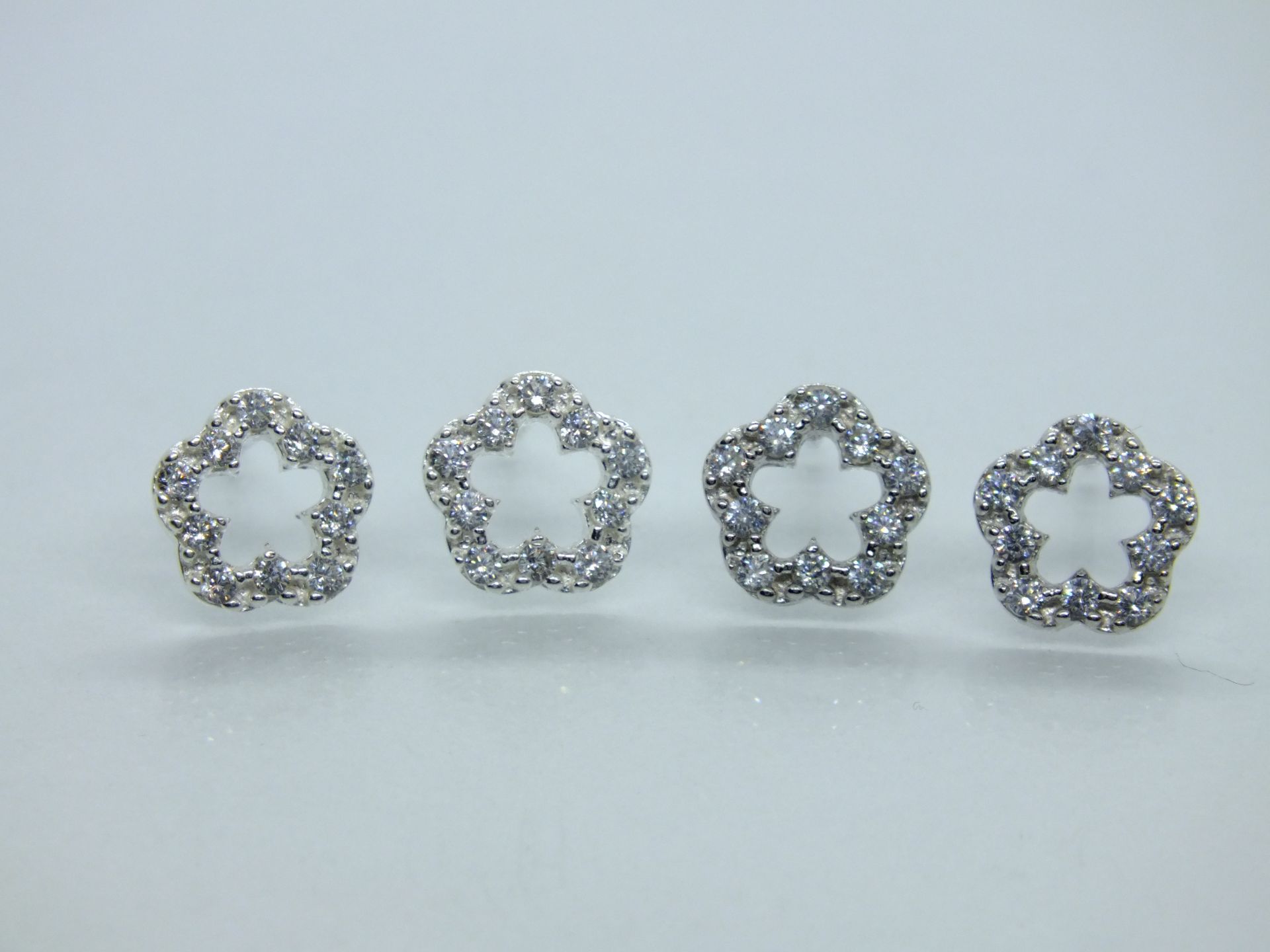 Női ezüst fülbevaló,virág forma átlátszó cirkóniákkal gyöngy végződéssel. ...
