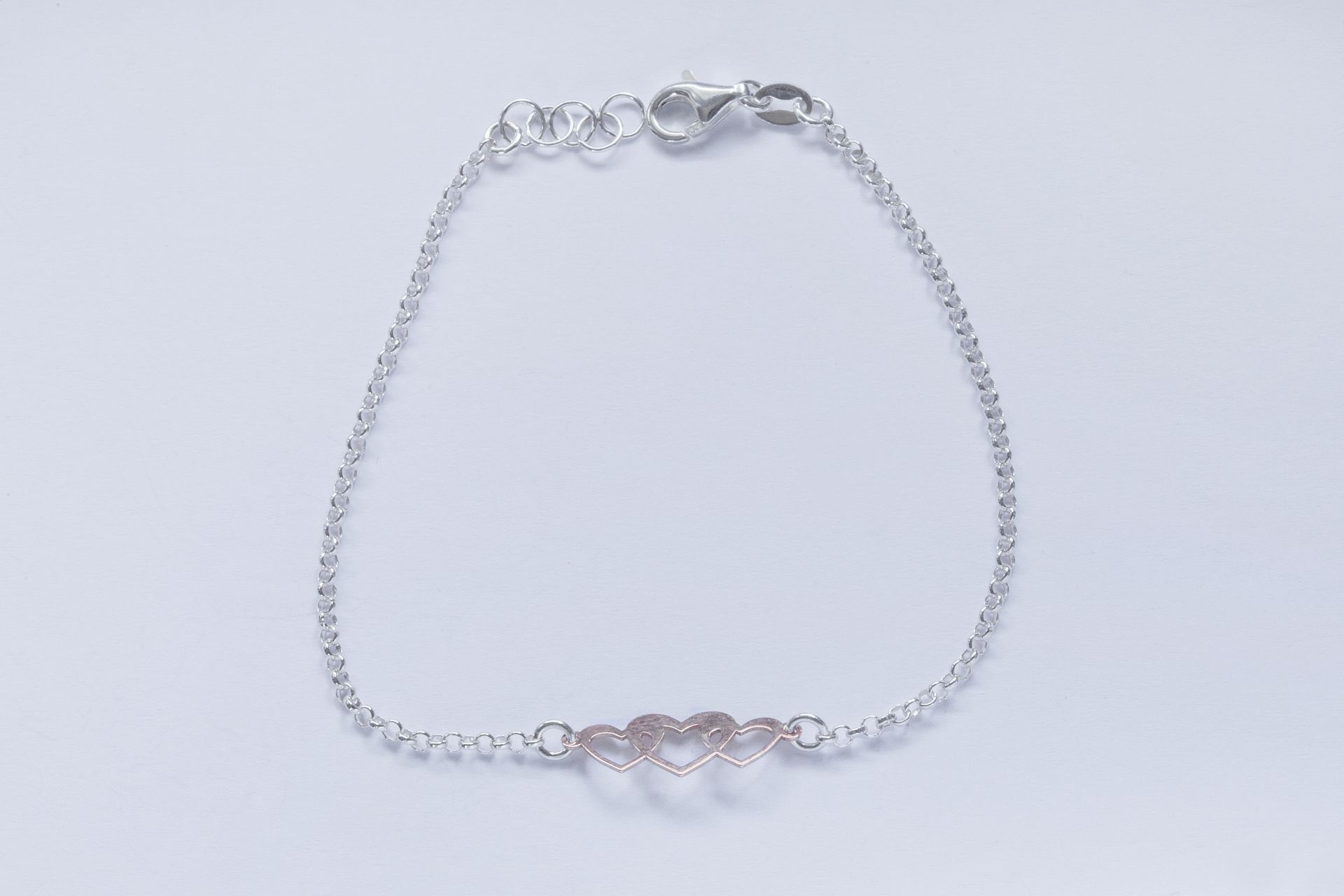 Ezüst női karkötő kör alakú szemekkel közepén szívekkel összefogott. Karkötő hossza:18cm Láncszem átmérője:1,9mm