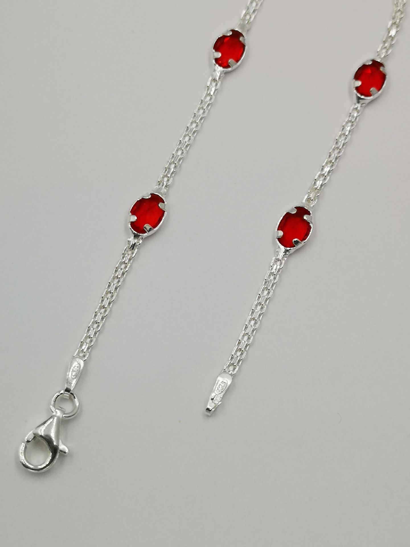 Női elegáns ezüst karkötő, piros és fekete cirkónia díszítéssel.Színválasztást a megjegyzés rovatnál kell feltüntetni!