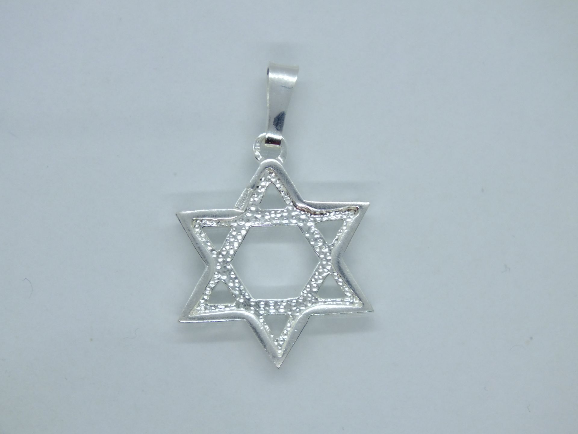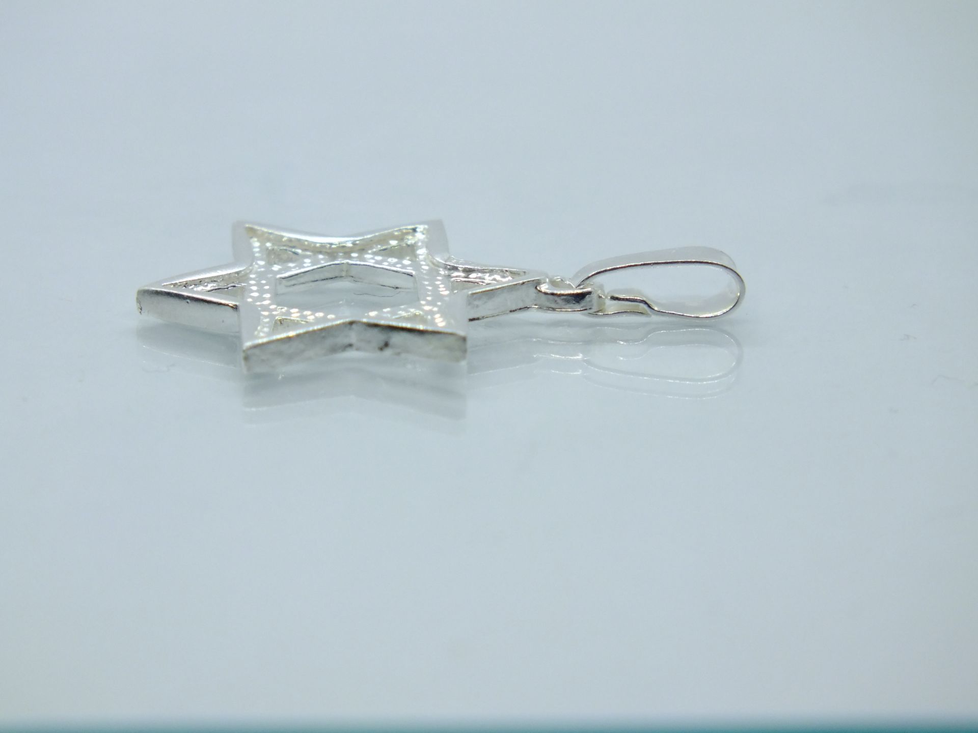 Dávid csillag, ezüst medál. Medál hossza:21,5mm Szélessége:2,6-17,6mm Vastagsága:1,5mm
