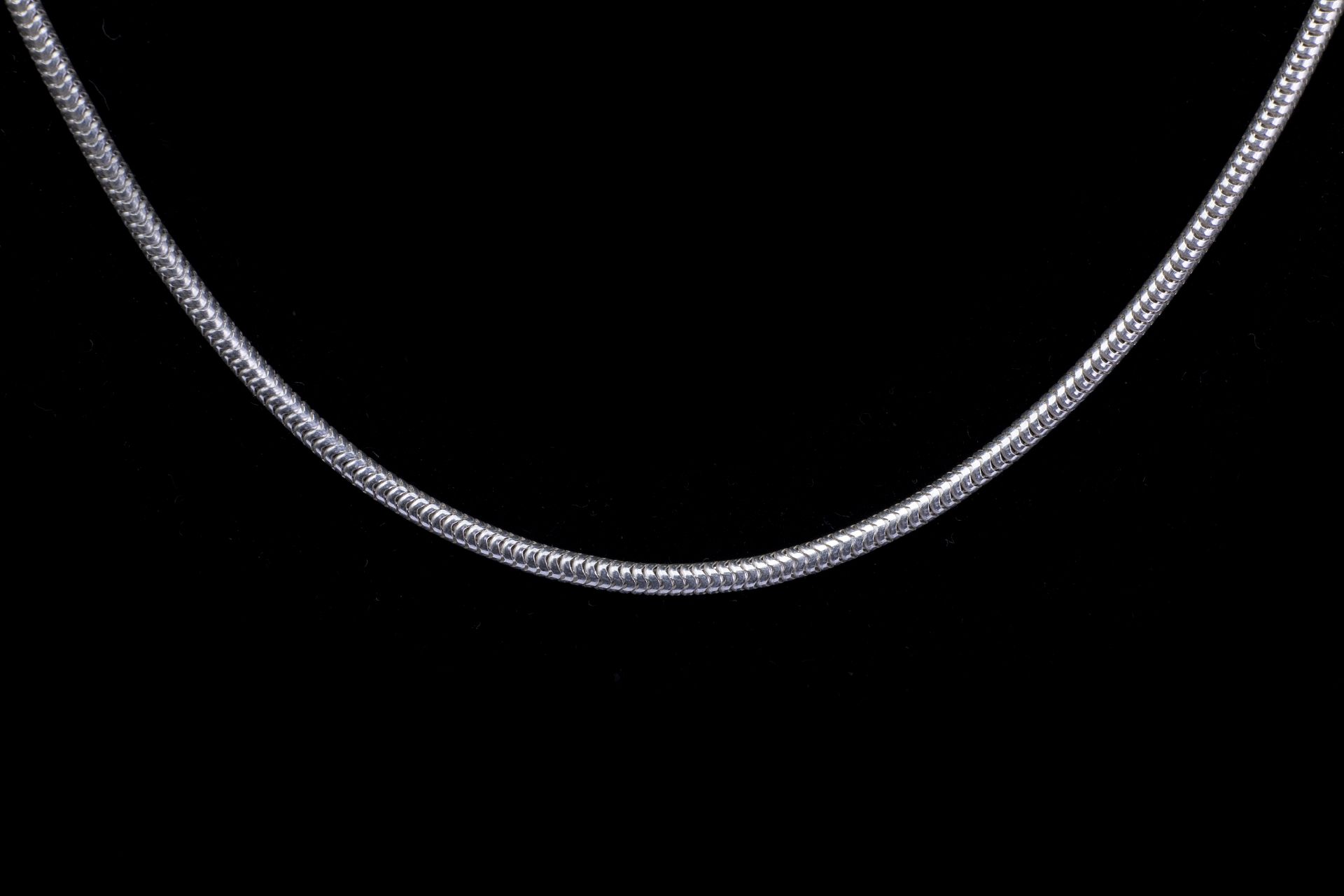 Ezüst nyaklánc hengeres kígyó stílus.